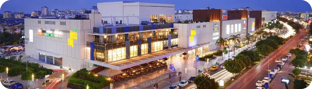 مراکز خرید مدرن: مراکز خریدی مانند مال آو آنتالیا (Mall of Antalya)، آنتالیا میگروس (Antalya Migros) و دیپو اوتلت سنتر (Deepo Outlet Center) برای خرید برندهای بینالمللی و تفریح مناسب هستند.