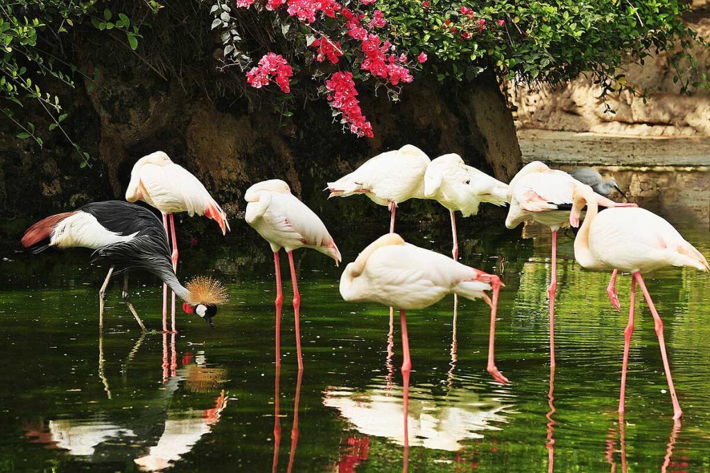 فضای آزاد و برکه: برای پرندگانی که امکان پرواز در فضای باز را دارند، مانند پلیکانها، فلامینگوها و قوهای زیبا. طراحی برکههای آب و آبشارها در این بخش، محیط طبیعی زندگی آنها را شبیهسازی میکند.